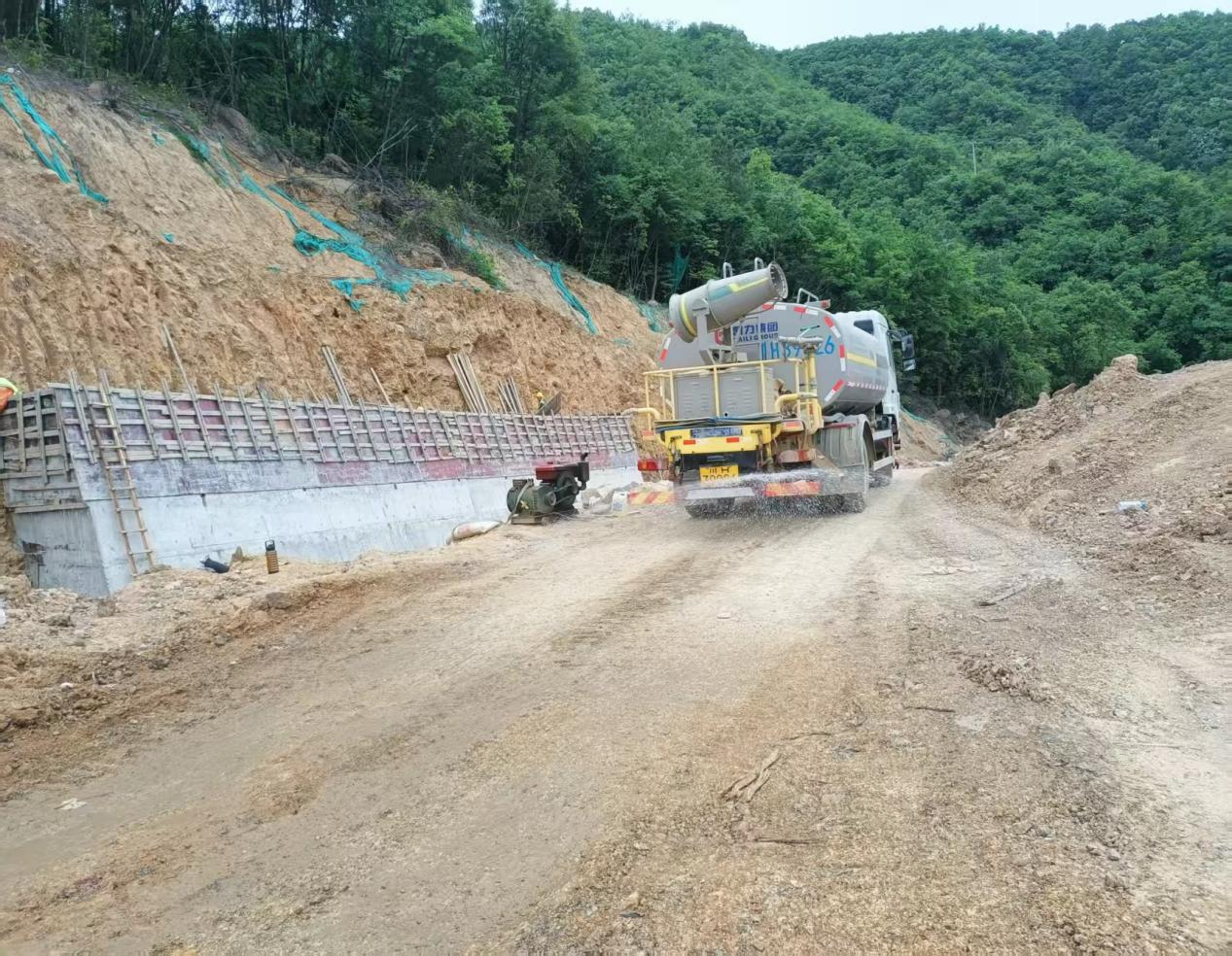 各項目通過掛網噴播植草、循環(huán)灑水降塵、霧炮機除塵、混凝土硬化、封閉圍擋運輸?shù)确绞介_展揚塵治理整改工作。